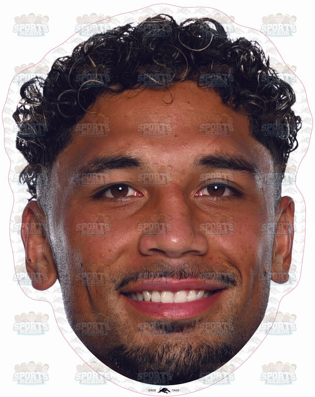 Show your support for one of the NRL's standout players with our life-like Izack Tago head cut-out! Whether you’re cheering from the stands, hosting a game day party, or decorating your fan cave, this cut-out is the ultimate way to display your admiration for Izack Tago.